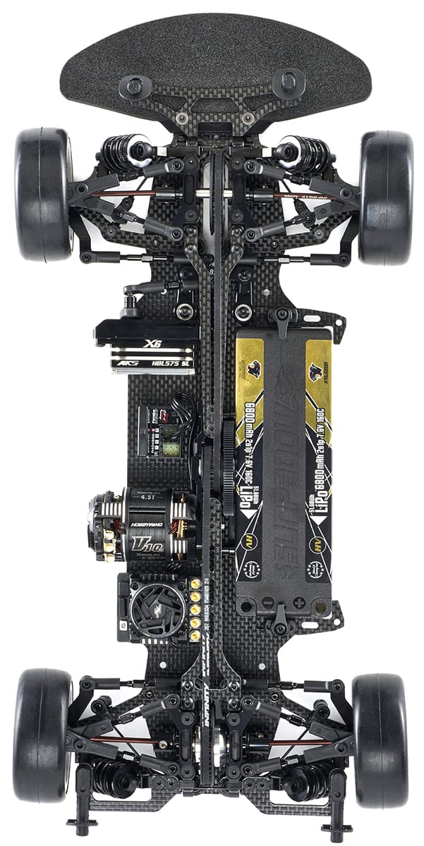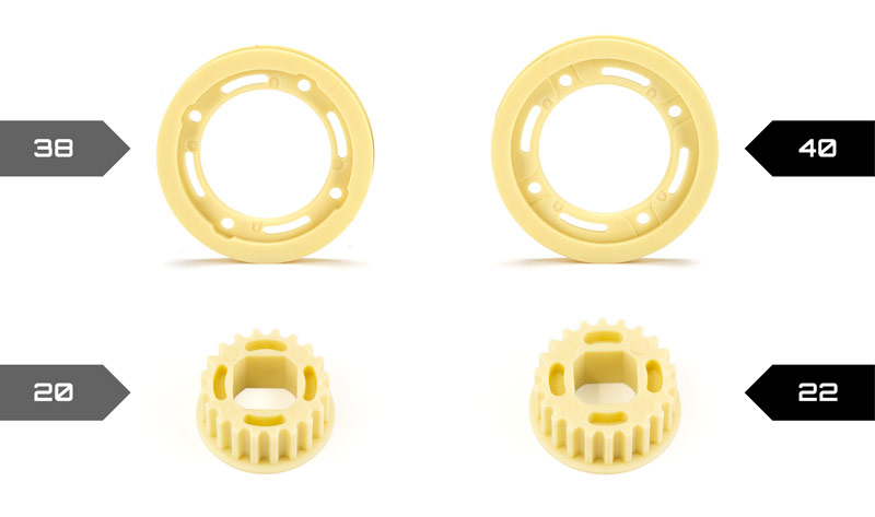 No optional parts required. Just complete flexibility, right from the start.Double Gear RatioTwo setups. One car. Full control. 40/22T – 357mm (Final Ratio 1.818) Smooth, responsive cornering with no stalling Ideal for high-traction, high-speed layouts