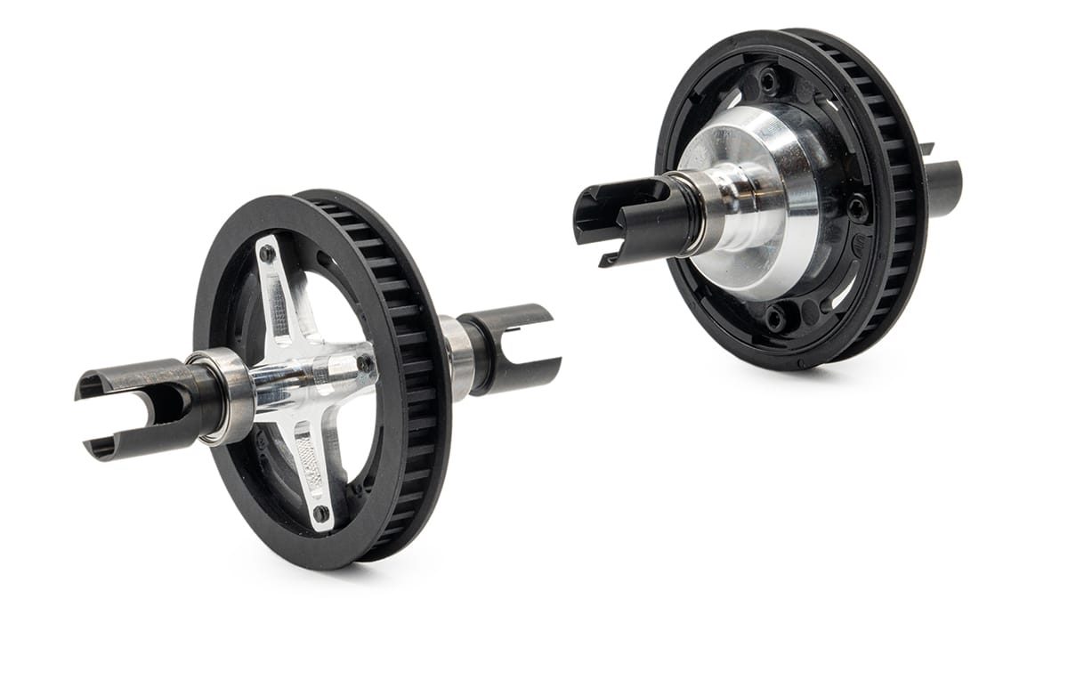 lower armFLEX CONTROLPlastic compounds matter especially in critical parts like the wheel hubs, where material stiffness directly affects how the car responds to available grip. Two versions are available to fine tune handling:Composite hubSimple, effective, and built for adaptability.DRIVETRAINDifferential & Front axleDesigned for maximum efficiency and long-term reliability, the front axle and rear differential are machined from high-grade 7075-T6 ERGAL, combining low weight with exceptional precision.